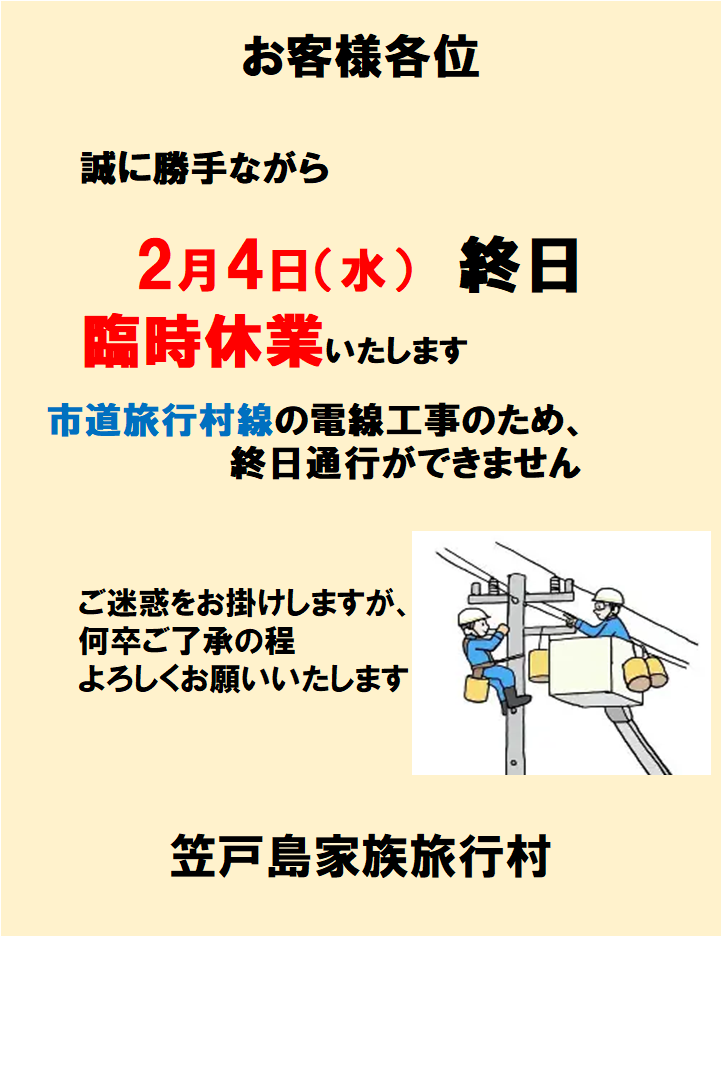 【重要】臨時休業のお知らせ(2026.2.4)