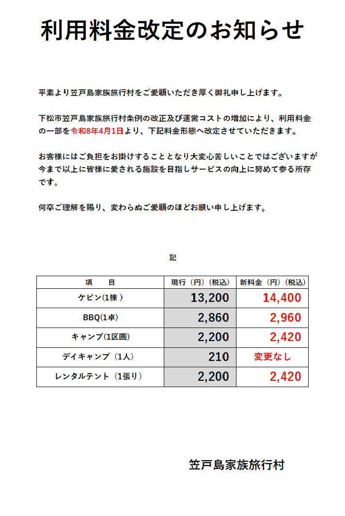 【重要】利用料金改定のお知らせ(2026.4.1~)